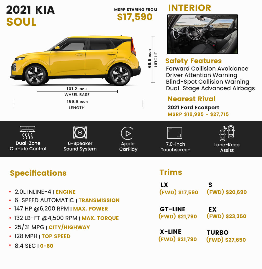 Web Search over 1291 new 2021 Kia Soul GT-Line. Review each trim to find the perfect Kia Soul. See Features Specifications and Options pages for details.